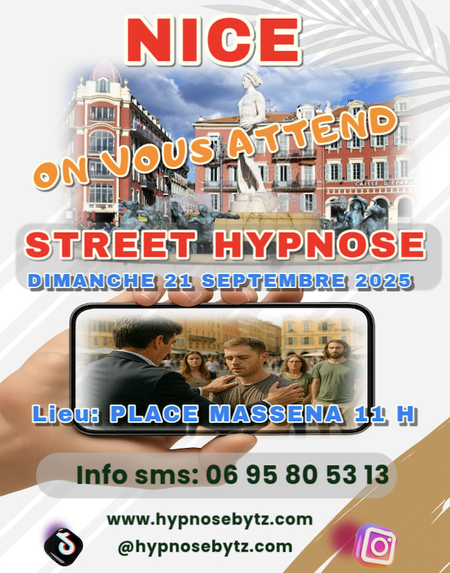 On vous attend pour une Journée Gratuite de Street Hypnose a Nice Place Masséna a partir de 11H Hypnose, Socca Niçoise obligatoire et bonne ambiance Free